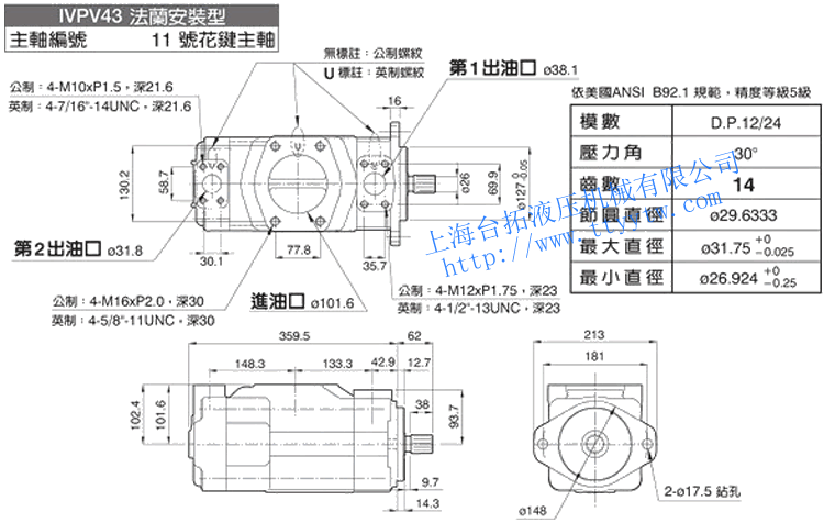 雙聯(lián)子母葉片定量泵IVPV42(11號花鍵主軸)尺寸圖下載 雙聯(lián)子母葉片定量泵IVPV43(1號平鍵主軸)尺寸圖下載