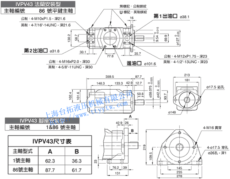 雙聯(lián)子母葉片定量泵IVPV43(86號平鍵主軸/1&86號主軸)尺寸圖下載 雙聯(lián)子母葉片定量泵IVPV43(11號花鍵主軸)尺寸圖下載