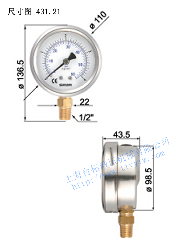 臺灣協(xié)鋼SKON充油式壓力表431.21尺寸圖