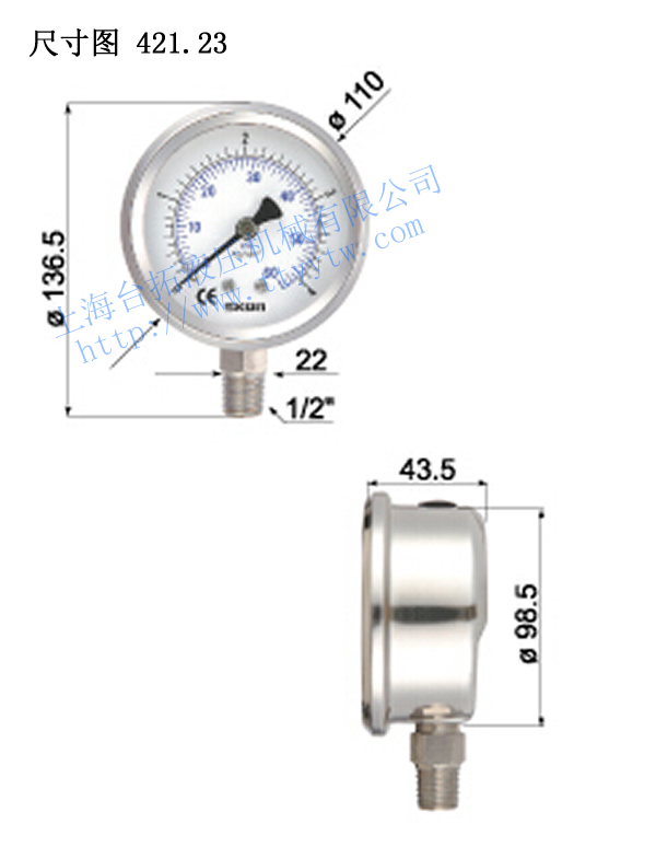2、充油式不銹鋼壓力表421.23使用于高壓力負(fù)載及激烈震動的工作環(huán)境。