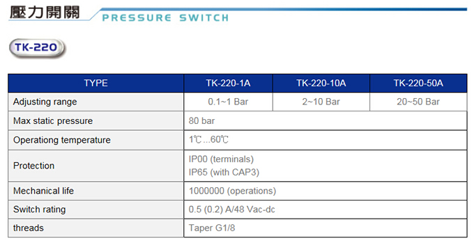 產(chǎn)品型號:壓力開關(guān)TK-220