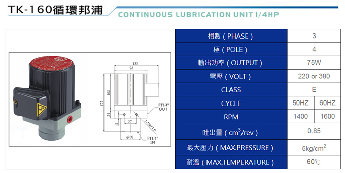 循環(huán)泵浦TK-160規(guī)格表
