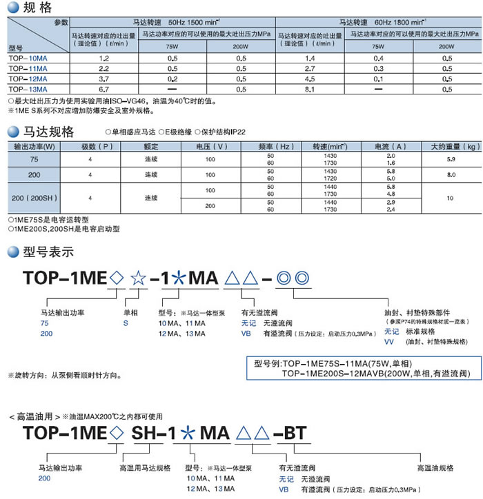 單相100V馬達一體型,馬達輸出功率75W/200W。小型、輕量,小容量(0.8~4.5cm3/rev),低吐出壓。用途:輸送操作油、潤滑油,液體溫度:-5~80°C,適用的液體粘度:10~500mm2/sec。